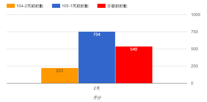 (1) 105學年度第二學期2月份節次統計圖