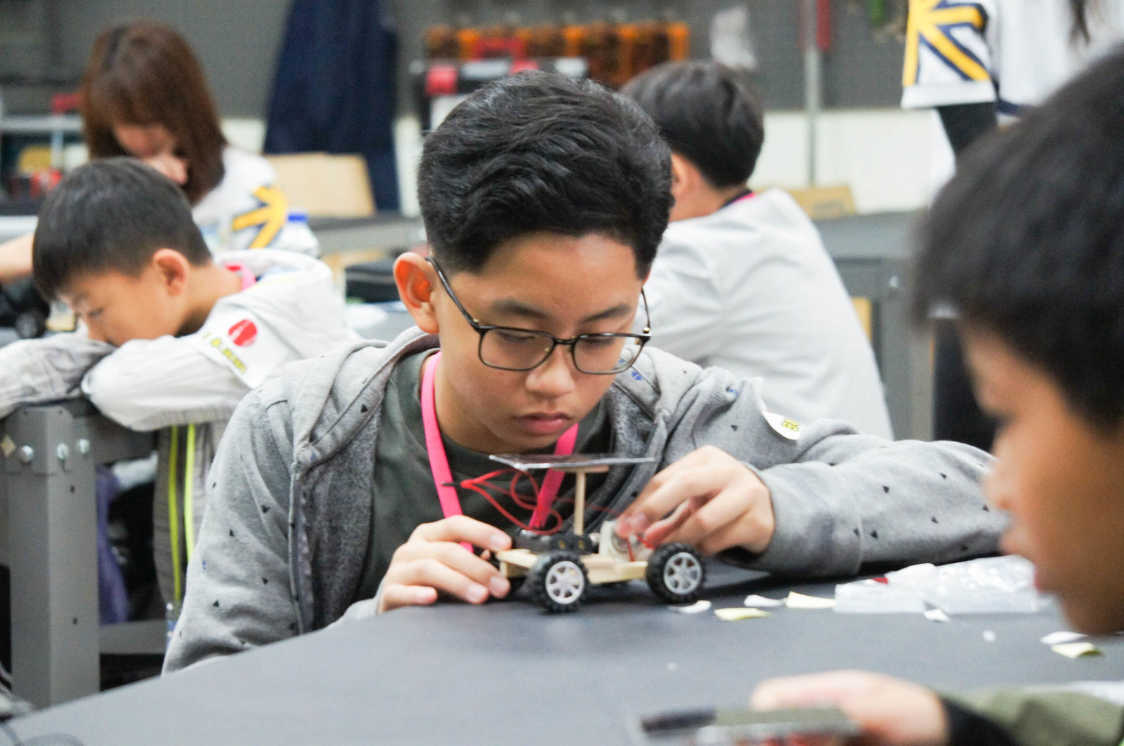 葳格中學國中部將平常上課的課程進行延伸,透過科技、語言和國際等元素,讓學習不只限於書本上,而能夠活躍於生活中。這次的營隊課程參加人數兩場共計超過360位孩子活動報名以秒殺的速度額滿,為中部最大型、最專業之主題式營隊,共開發6種主題,包含AI玩轉程式、Tello 無人機 DIY、物理噴射水管槍 DIY、洋蔥帽德式黑森林蛋糕、FUN MAKER 四驅車 DIY和 液態氮朵雲冰淇淋調飲等,充滿跨領域的學習主題,透過老師們的巧手變化,讓孩子們有個難忘的做中學的回憶。