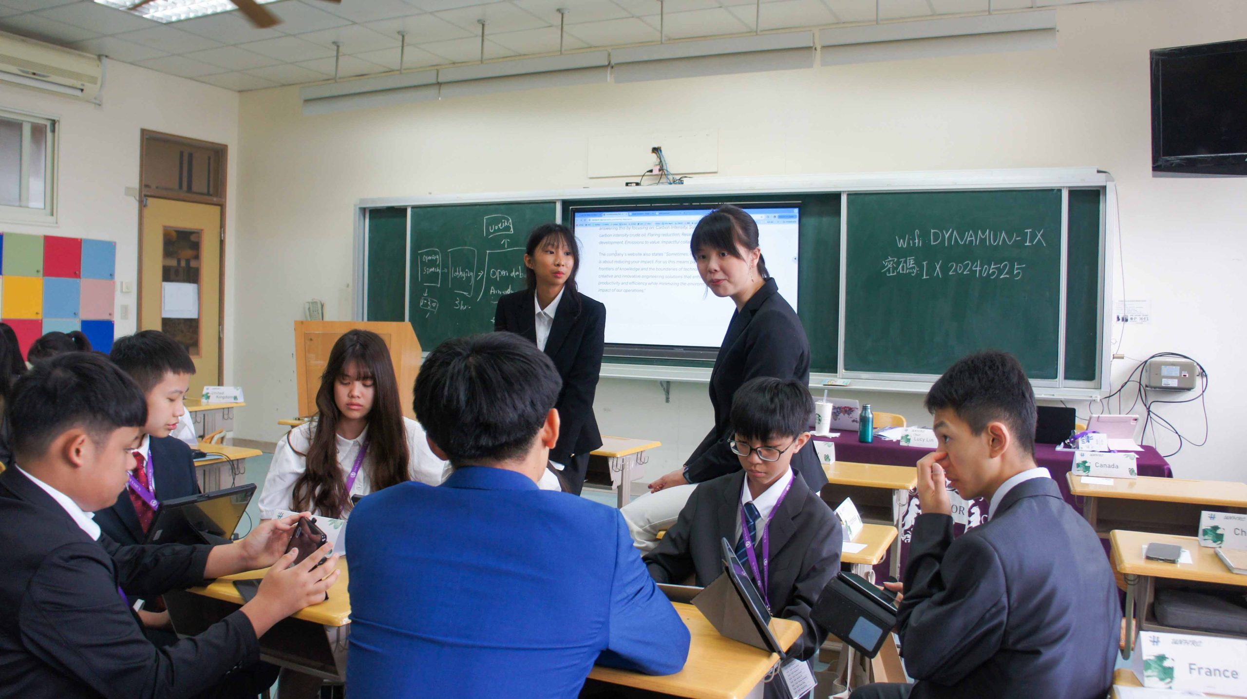 The opening ceremony began with a performance by the Wagor honor guard, and we were honored to have Vice President of the Parent Association, Mr. Chen Peng Wang, deliver a speech. High school students from all over Taiwan gathered to take on roles as UN chairs, officers, and country representatives, simulating UN meetings to discuss major international issues. Participants not only enhanced their English skills but also expanded their global perspective through research, logical thinking, and communication.