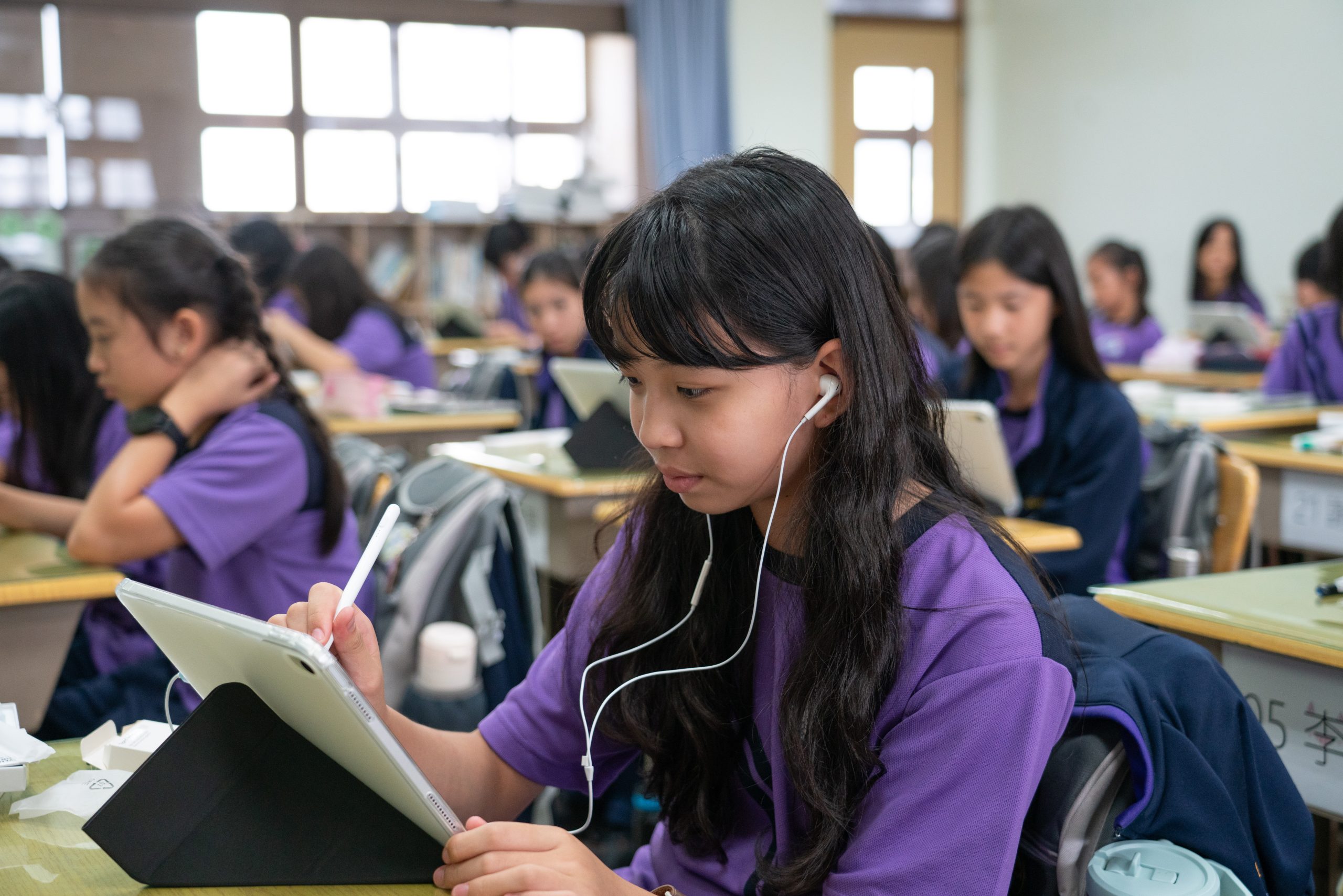 全面e化的教室皆配置觸控螢幕和 iPad充電車,新生拿著專屬的 iPad,在求學過程中紀錄學習的點點滴,而這台 iPad 將陪伴同學們三年,成為最具有紀念價值的畢業禮物。