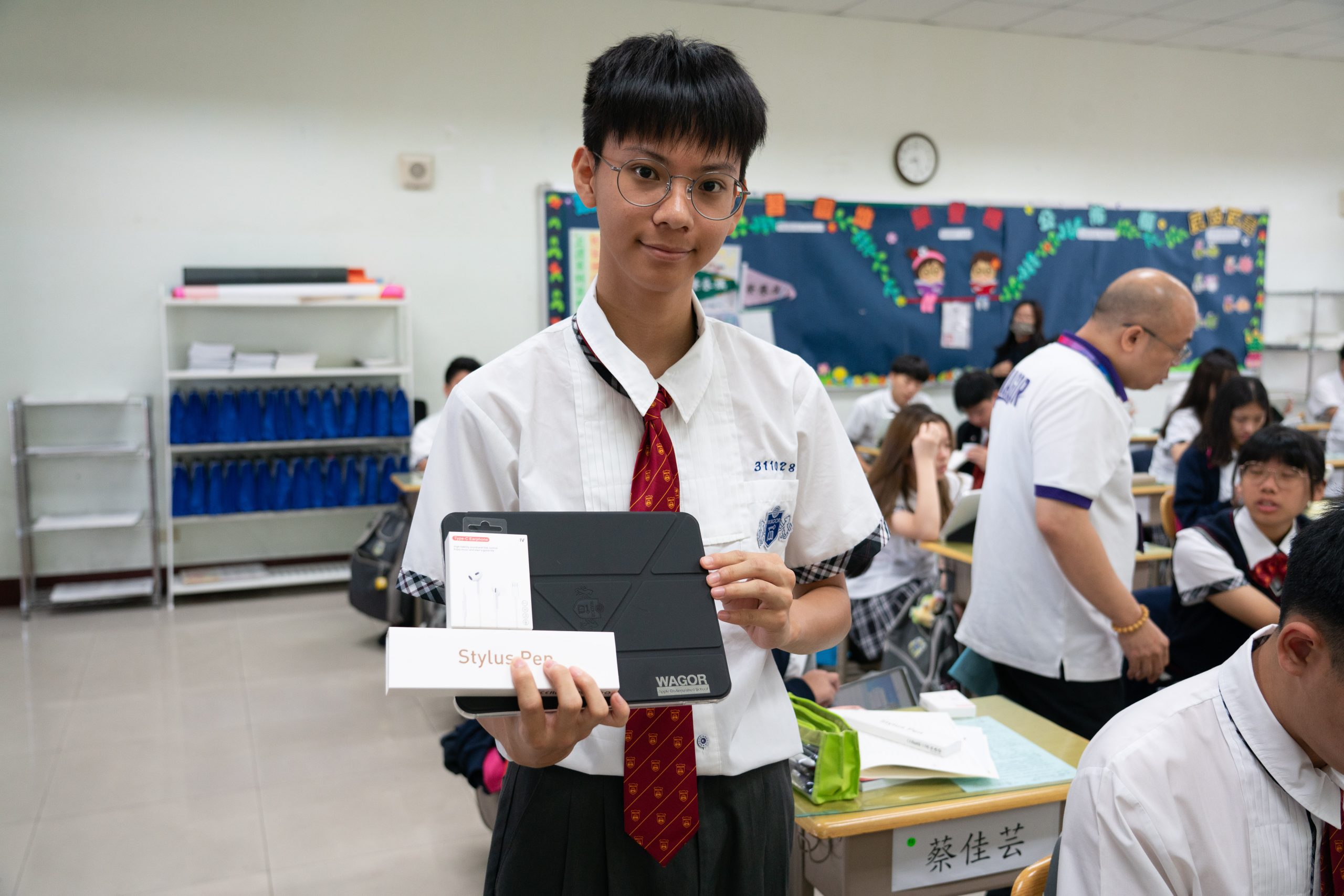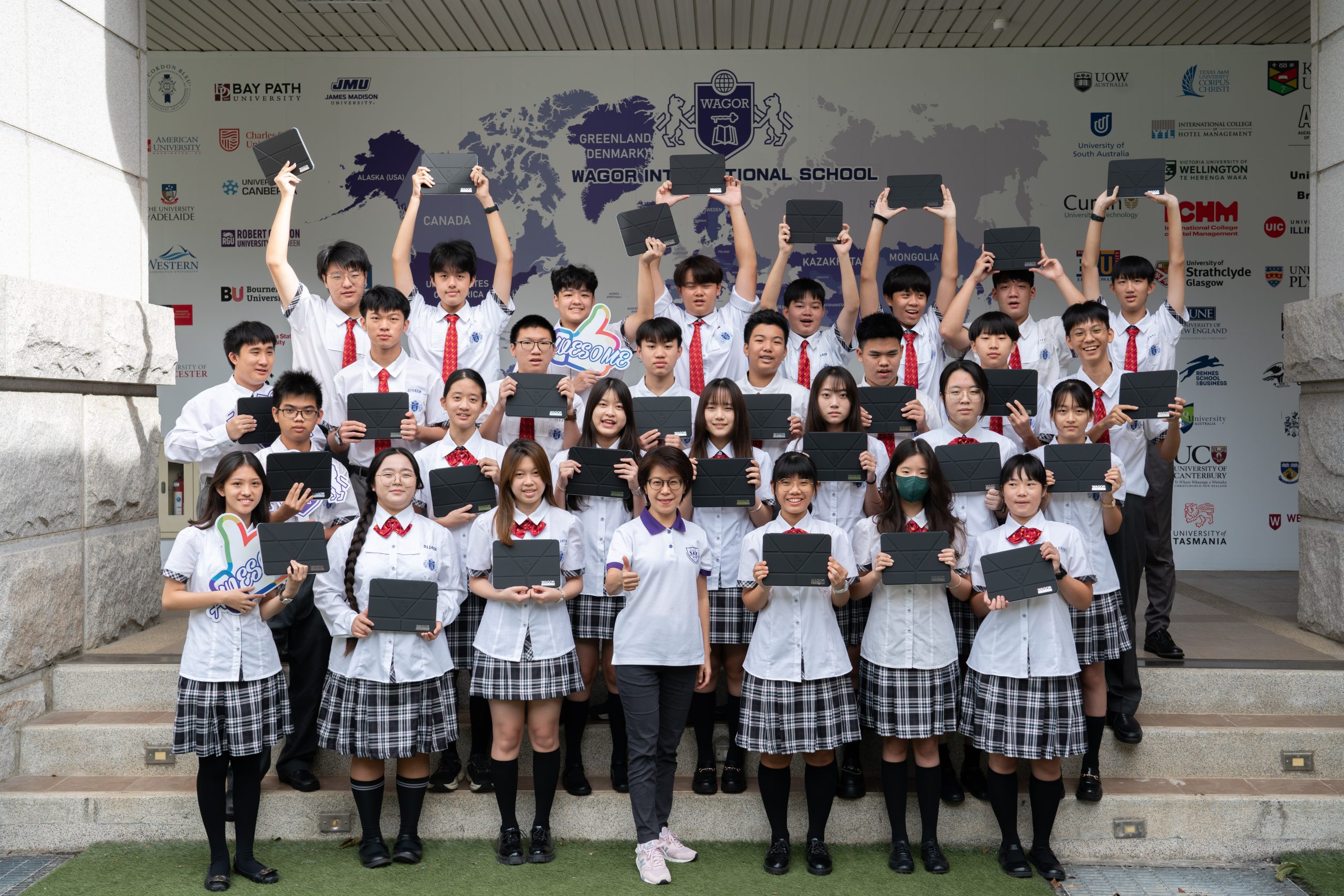 班級團照中大家開心的秀出 iPad 保護殼上的葳格 logo,象徵自律和行動學習的開始,期待大家善用資源,盡情享受葳格用數位科技輔助教學的課堂,學會與AI人工智慧協作,更重要的是一定要「終生學習」,思考自己應該聚焦在什麼樣的能力,才能獲得科技以外的絕對優勢,與AI人工智慧加乘後脫穎而出。