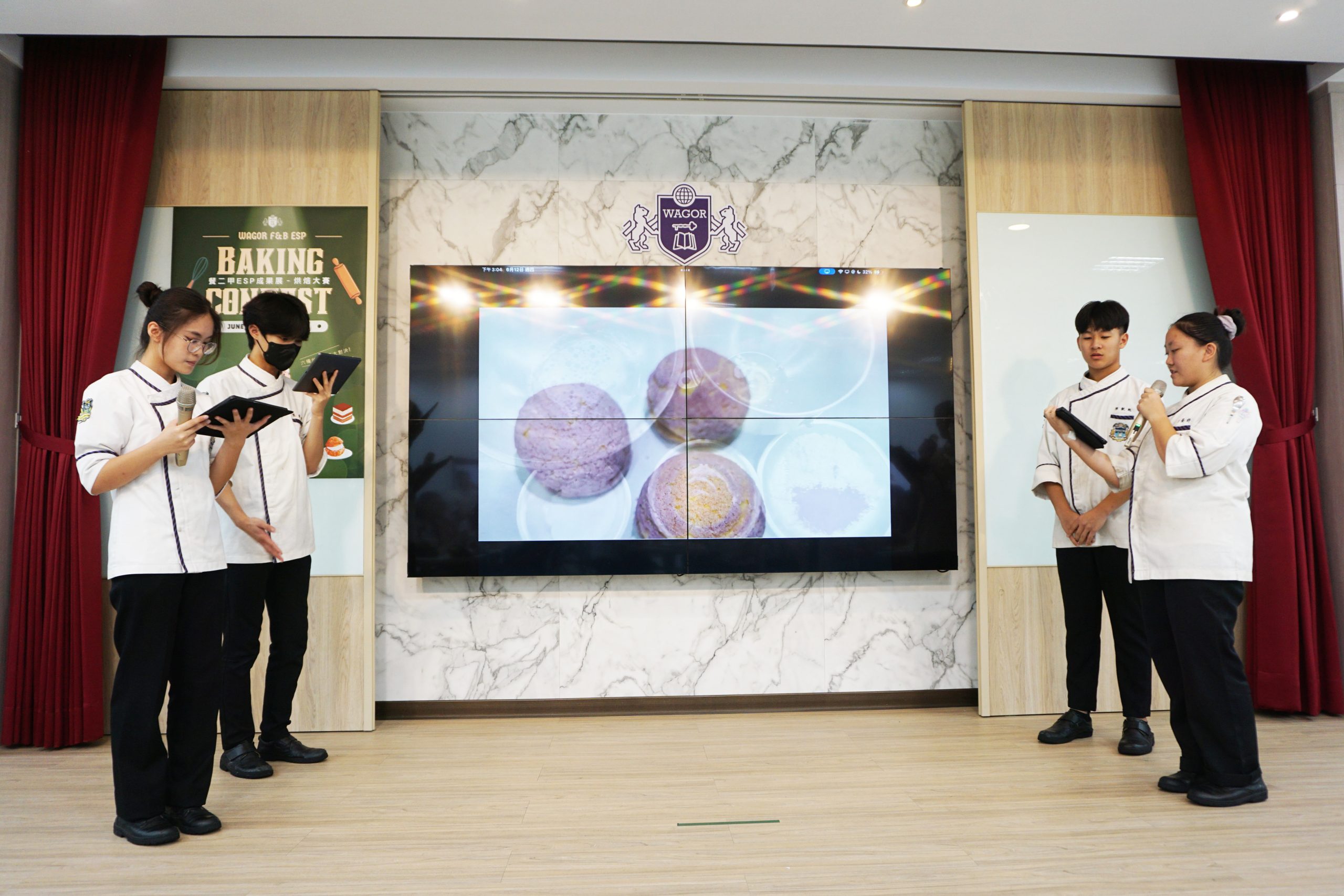 現場的香氣像是一條看不見的絲帶,牽引著家長和師長走進幸福王國,在各組的站點體驗烘焙的魔法,用iPad票選出心之所向,鳳梨、芒果、荔枝、紫薯、黑糖、麻糬這些食材變身主角,同學們的成品各有亮點又恰到好處,每一口都吃得出用心,感謝王智聖老師和Tr. Willie的悉心指導,同學們未來的表現令人期待!
