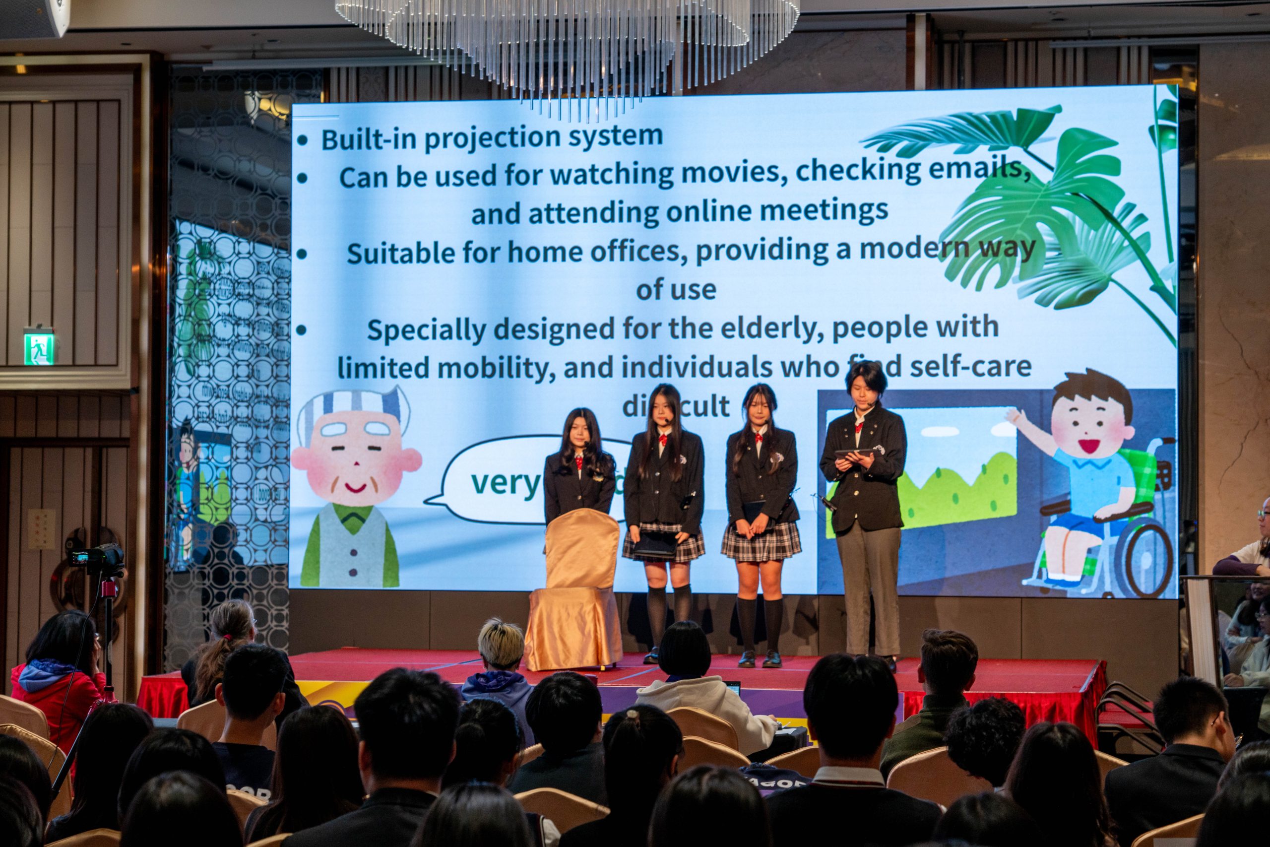 要回答問題才能關閉的鬧鐘、能自動開傘解放雙手的書包、既防水又耐火的超跑鞋、多功能口罩、對環境友善的美妝套組、電輔超大容量行李箱、智能藥盒、連動意識的智慧型眼鏡、專為創業家設計的媒合App、會幫你刷牙洗臉的AI馬桶……